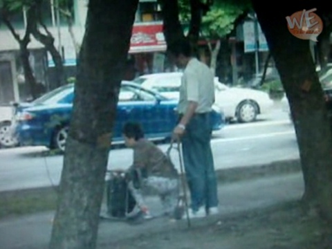 目擊者拍攝的畫面顯示,這名男子疑似陪老婦人進行復健,不過老婦人身上卻多出一條像是狗鏈的東西,畫面中只見男子任憑老婦人摔跤、爬起不斷重復動作,卻未曾想把老人扶起,讓目擊者不禁懷疑男子是否涉及虐待。