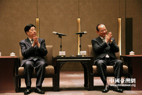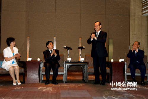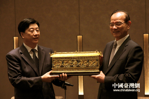 會見結(jié)束后雙方互贈禮物。(中國臺灣網(wǎng) 馬迪 攝)