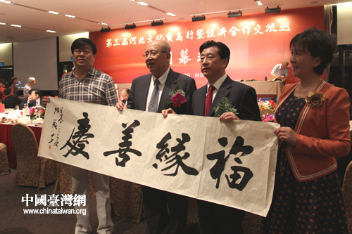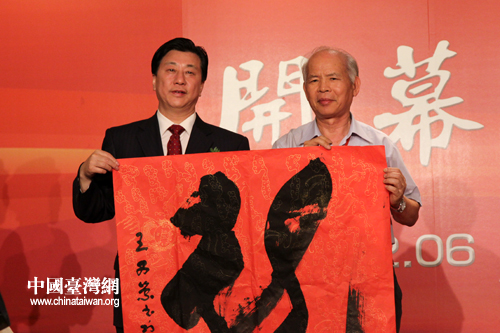 河北省書法家現場揮毫潑墨,將墨寶贈送給吳伯雄。(中國臺灣網 馬迪 攝)
