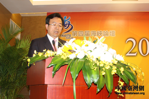 中國僑聯(lián)副主席李卓彬在四屆海峽論壇·兩岸僑聯(lián)和平發(fā)展論壇上致辭。(中國臺灣網(wǎng) 張潔 攝)