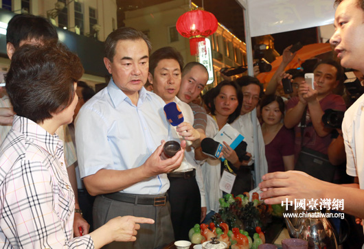 中國臺灣網6月18日廈門消息 中共中央臺辦、國務院臺辦主任王毅17日晚走進廈門市中山路,逛臺灣特色廟會,品原味道地小吃,看文化創意產品,與攤主拉家常話發展。