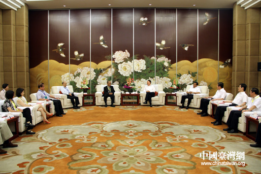 文化部楊志今副部長、山東省委常委顏世元、山東省副省長張建國7月2日晚會見了“情系齊魯——兩岸文化聯誼會”的臺灣嘉賓團長林圣芬一行。(中國臺灣網 芮益芳 攝)