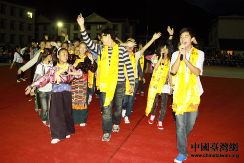 7月5日晚,川臺(tái)兩地學(xué)生在九寨溝縣漳扎小學(xué)舉行篝火晚會(huì)。(中國臺(tái)灣網(wǎng) 王偉 攝)