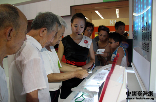 觀展市民體驗臺灣精品館內“全球第一”的高科技產品。(中國臺灣網 王思羽 攝)