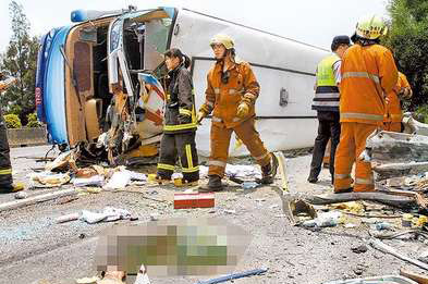 7日,哈爾濱教師旅行團在臺發生1死39傷翻車事故。圖片來源:臺灣媒體