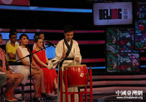 鼓的加入,使南山詩社的表演更富有表現力。(中國臺灣網 李瑞艷 攝)