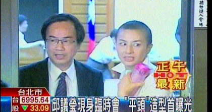 這一刻鎂光燈閃不停,罹患卵巢癌的民進黨民代邱議瑩一頭超短發現身臺立法機構,“朝野”各黨派為了“美牛”案將召開連續4天的臨時會,但邱議瑩甩開頭巾,露出超短發卻立刻成為焦點。