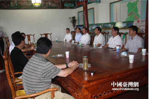 北京市臺辦副主任王蘭棟、北京臺資企業協會理事長林清發等一行人員聽取房山區河北鎮有關負責人介紹受災情況。(中國臺灣網 高斯斯 攝 )