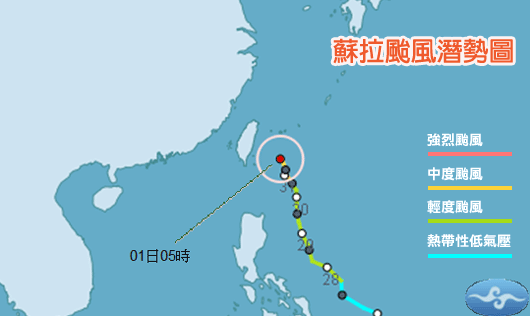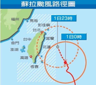 臺風蘇拉路徑搖晃像醉鬼 外圍風力最高達13級