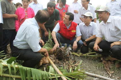 馬英九在臺(tái)東勘查香蕉園。資料照片來源:臺(tái)灣媒體