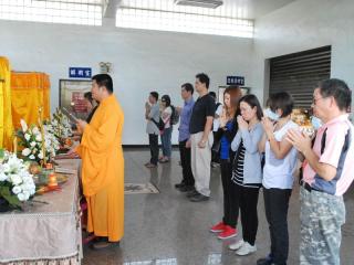 罹難的機組員家屬在臨時靈堂念經吊慰死者。圖片來自臺媒