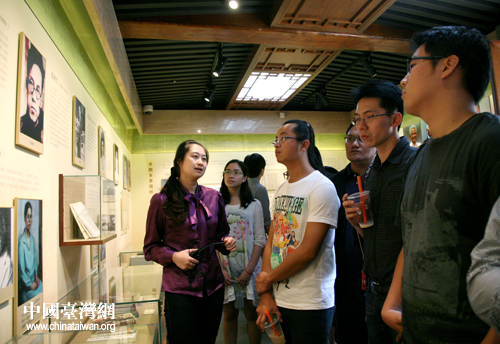 16日下午,來自清華大學、北京大學、中國人民大學、中央民族大學等六所高校的150多名臺灣學生參觀了位于前門附近的臺灣會館。圖為會館工作人員向大家講解在京名人事跡。(中國臺灣網  普燕攝)