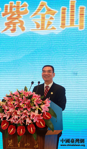 世界銀行前副行長(zhǎng)、北京大學(xué)教授林毅夫在海峽兩岸企業(yè)家紫金山峰會(huì)作主題演講。(中國(guó)臺(tái)灣網(wǎng) 王偉攝影)