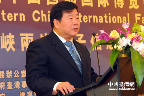 國務院臺灣事務辦公室副主任孫亞夫在中國西部海峽兩岸電子信息產業合作研討會上致辭(中國臺灣網 王曉蕊 攝)