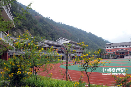 災(zāi)后重建的石棉縣民族中學(xué)校園(中國臺(tái)灣網(wǎng) 王曉蕊 攝)