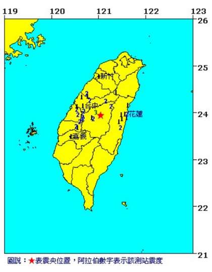 中國臺灣網(wǎng)10月13日消息 據(jù)臺灣媒體報道,今天下午3時發(fā)生里氏規(guī)模4.3級的地震,震央位在南投縣仁愛鄉(xiāng),震源深度37.2公里,最大震級出現(xiàn)在南投埔里的3級,臺中市德基、南投市、彰化縣二水、花蓮縣光復(fù)、花蓮市、云林縣斗六和苗栗縣三義2級,臺中市、嘉義市和新竹市為1級。(中國臺灣網(wǎng) 杜美瑩)
