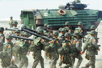 臺“立院”預算中心報告點出,臺軍面臨募不到兵、超過6成的志愿役士兵期滿不愿留營的憂慮。圖為兩年前臺軍海軍陸戰隊兩棲突擊車演練。圖片來源:臺灣《聯合報》資料照片