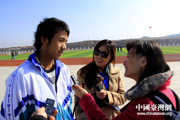 蘭州新區(qū)舟曲中學(xué)學(xué)生接受網(wǎng)絡(luò)媒體記者們的采訪。 (中國臺(tái)灣網(wǎng) 董憲超 攝)