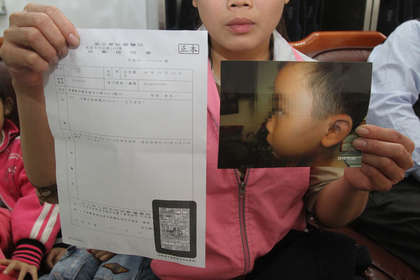 5歲朱姓男童上周遭到女老師打耳光、塞垃圾桶,家長今天上警局提告。圖片來源:臺灣媒體