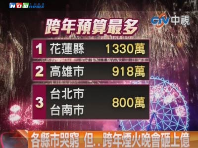 雖然各縣市政府哭窮,但跨年煙火晚會預算持續編列,第一名花蓮縣高達1330萬新臺幣。(圖片來源:臺灣“今日新聞網”)