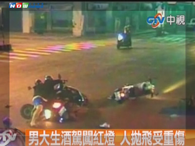 中國臺灣網12月11日消息 據臺灣今日新聞網報道,臺灣屏東又發生一起青年酒駕肇事事件,10日晚間21點,兩名大仁科技大學的學生飲酒后騎機車在市區闖紅燈,撞上騎機車的父女。騎車的黃姓學生酒測值為0.26,被載的楊姓學生受重傷。