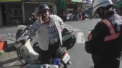 違規(guī)男子動作頻頻,質(zhì)疑稱警員沒有權(quán)力開罰單(圖片來源:臺灣媒體)
