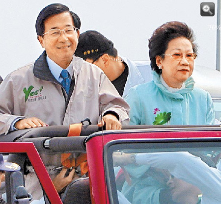 2004年臺灣地區領導人選舉期間,陳水扁與呂秀蓮拉選票(資料圖)