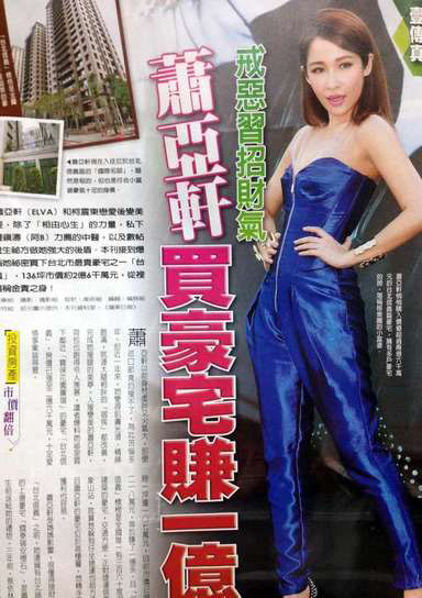 蕭亞軒投資房產(chǎn)狂賺1億。圖片來源:臺灣媒體