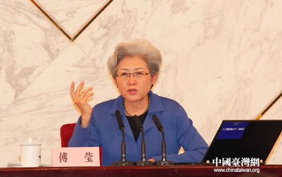 十二屆全國人大一次會議新聞發言人傅瑩回答記者提問。(中國臺灣網 何建峰 攝)