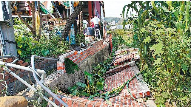 【圍墻殺人】南投集集鎮老婦楊陳端在宅旁菜園拔菜時,不幸被震塌的一堵磚墻壓死。(圖片來自臺媒)