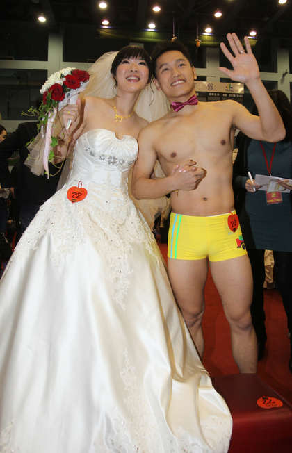 中國臺灣網(wǎng)3月31日消息 據(jù)臺灣媒體報道,臺北市民政局今天在臺北體育館舉辦今年首場聯(lián)合婚禮,共有38對新人參加,現(xiàn)場彌漫著幸福浪漫,全場最吸睛的新人,是擔(dān)任游泳教練的體育老師陳瑞辰,穿上鮮黃色四角泳褲,牽著身穿白紗的老婆步入會場,腹肌明顯精壯的好身材,引發(fā)在場觀禮家屬一陣驚呼、歡聲雷動,人魚線若隱若現(xiàn),民眾直呼太可惜,“穿三角褲看得比較清楚”。