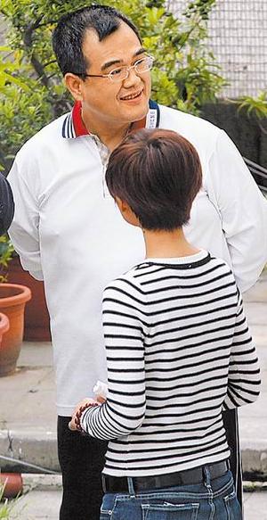 前天宣判后,林益世在律師事務所露出笑容。前為妻子彭愛佳。圖片來自臺灣媒體