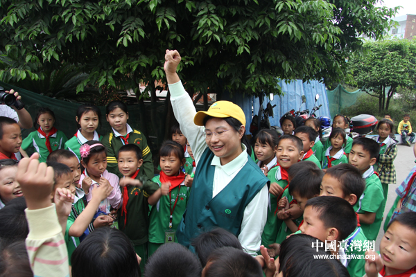 頂新公益基金會副秘書長周淑禎帶領普安小學的孩子們做游戲(中國臺灣網 李徽 攝)