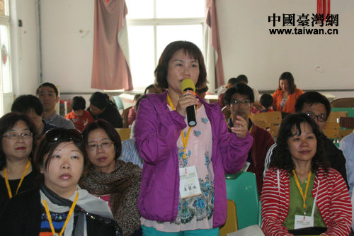 臺灣參訪團姜碧珠女士參與提問環節。(中國臺灣網 郭瑩瑩 攝)