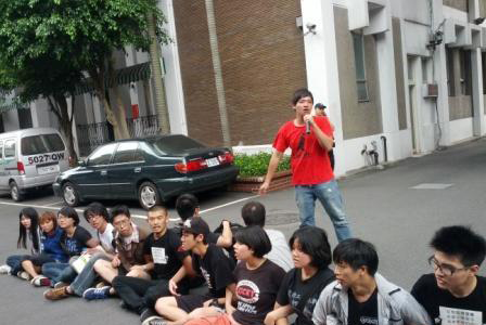 以陳為廷為首的學(xué)生,隨后停留院內(nèi)的停車場靜坐,并呼喊口號(hào),學(xué)生還將麥克風(fēng)、音箱等設(shè)備帶進(jìn)院內(nèi),大喊反壟斷口號(hào)。