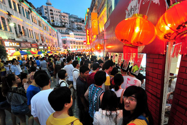 第四屆海峽論壇期間,廈門市民在排隊購買臺灣特色食品。海峽論壇一系列活動的舉辦,充分拉近了兩岸基層民眾彼此間的距離。(圖自新華社)