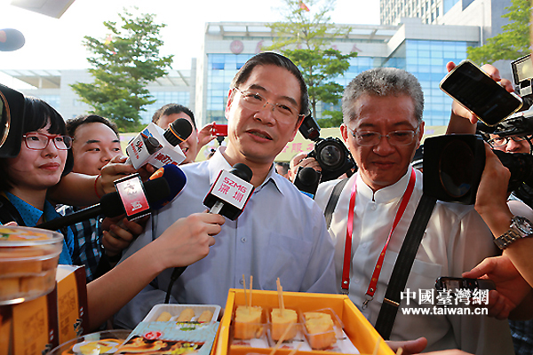 6月16日下午,中共中央臺辦主任張志軍在第五屆海峽論壇期間走進臺灣特色廟會,了解臺灣業者經營情況,品嘗原汁原味的臺灣小吃,大贊好呷(閩南語:好吃)! (中國臺灣網 田云鵬 攝)