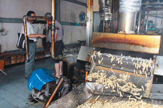 嘉義市衛(wèi)生局接獲民眾檢舉,指生產(chǎn)面食類產(chǎn)品的茂州食品工廠內(nèi)有老鼠、蟑螂,防腐劑過量且使用回鍋油。食品衛(wèi)生科昨天突襲檢查,發(fā)現(xiàn)工廠作業(yè)環(huán)境油膩、機具卡油垢,油炸用油沉淀、撈出油渣后,混合新油繼續(xù)使用,回收舊油內(nèi)還有蟑螂飄浮。