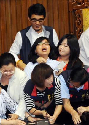 臺“立法院”藍綠爆發大混戰 潑咖啡大哭扯頭發(圖)