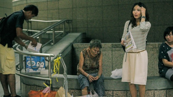 清秀女子幫年邁奶奶賣報,并呼吁社會力量伸出雙手。(圖片來自臺媒)