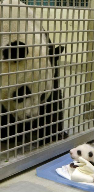 此時,“圓仔”彷佛知道媽媽就在面前,雖然眼睛還未睜開,卻突然開始哇哇大叫,聽到了“圓仔”的叫聲,“圓圓”也邊扒著鐵欄桿邊低鳴吼叫,不時伸出溫柔的舌頭舔拭“圓仔”,在場的保育員驚呼,“從來沒有聽圓圓這樣叫過”,這是母愛的流露。(中國臺灣網(wǎng) 李帥)