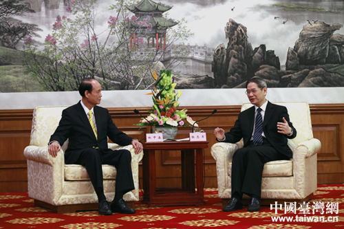 中共中央臺辦、國務院臺辦主任張志軍14日在北京會見了臺灣海基會董事長林中森及其率領的臺灣媒體高層大陸參訪團。(中國臺灣網 王偉 攝)