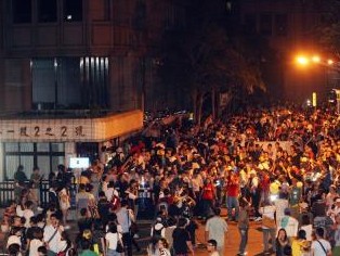 大埔事件持續(xù),臺灣農(nóng)村陣線與捍衛(wèi)農(nóng)鄉(xiāng)聯(lián)盟等自救會團體18日再上凱達格蘭大道,晚間凱達格蘭大道集會雖然和平落幕,但是曲終人未散,群眾轉(zhuǎn)向臺當局“內(nèi)政部”。(圖片來自臺媒)