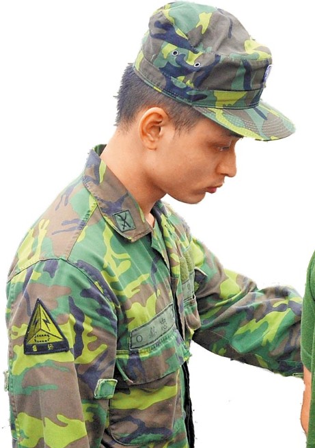 前臺軍542旅憲兵官蔡忠銘,發(fā)現(xiàn)洪仲丘的體檢表身體質量指數(shù)(BMI)過高,不能送禁閉,拒絕配合簽辦,事后還被記大過。圖為7月18日他前往北部軍檢院區(qū)應訊。(圖片來自臺媒)