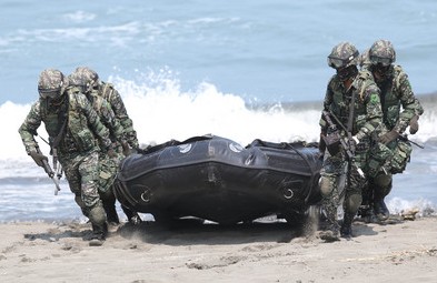 臺軍志愿役海軍陸戰隊軍事操演。(圖片來自臺媒)