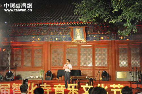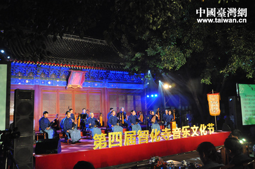 為弘揚(yáng)中華民族傳統(tǒng)文化,加強(qiáng)兩岸文化交流,進(jìn)一步宣傳與展示非物質(zhì)文化遺產(chǎn),由北京市文物局、北京市臺灣同胞聯(lián)誼會主辦,北京文博交流館承辦的第四屆智化寺音樂文化節(jié)于近日舉行。2013年9月16日在智化寺舉辦的“花好月圓”音樂晚會是此次音樂文化節(jié)的重要環(huán)節(jié)。(北京市臺聯(lián) 趙輝 攝)