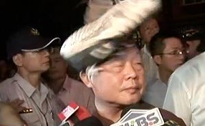 劉政鴻(中)被鞋子砸中額頭。圖片來自臺媒