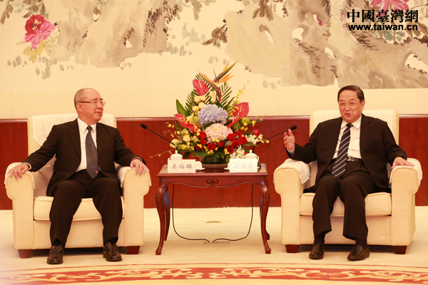 中共中央政治局常委、全國政協主席俞正聲在廣西南寧會見了中國國民黨榮譽主席吳伯雄(中國臺灣網 于斯文 攝)