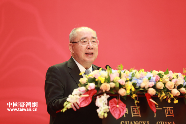 中國國民黨榮譽主席吳伯雄出席第九屆兩岸經(jīng)貿(mào)文化論壇開幕式并發(fā)表演講。(中國臺灣網(wǎng) 于斯文 攝)