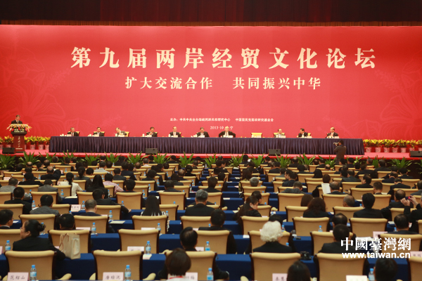 10月26日上午,以“擴大交流合作,共同振興中華”為主題的第九屆兩岸經(jīng)貿(mào)文化論壇在廣西南寧開幕。(中國臺灣網(wǎng) 于斯文 攝)